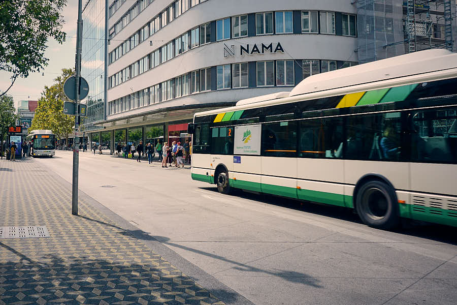 Der wichtigste Teil des öffentlichen Verkehrsnetzes ist das Bussystem des städtischen Unternehmens LPP. Die grünen Busse verkehren im gesamten Stadtgebiet und sind eine zuverlässige Möglichkeit, schnell von A nach B zu kommen. Für die meisten Besucher ist das Busfahren allerdings nur selten zwingend notwendig, da die Altstadt kompakt ist und viele Sehenswürdigkeiten nah beieinander liegen. Nach einem langen Tag oder wenn du etwas weiter entfernt wohnst, kann sich eine Busfahrt jedoch lohnen.